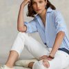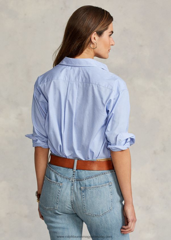 egyenes fazonú pamut poplin ing 2680483280 nők Ralph Lauren klasszikus középkék