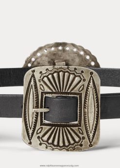 ihlette mr. Lauren amerikai nyugat iránti szeretete, ezt a vékony övet a rugalmas bőrszíj és a bonyolultan vésett ezüst tónusú díszítések határozzák meg.