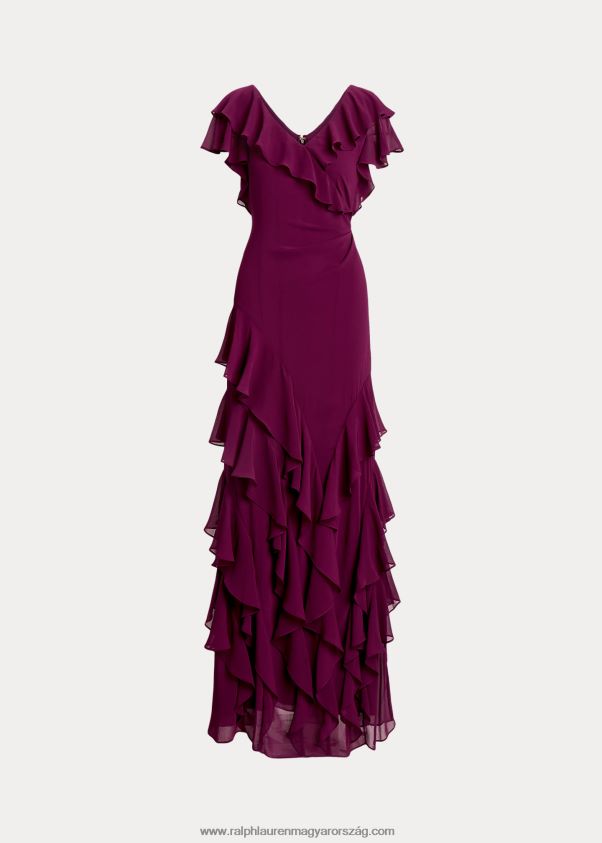 fodros szegélyű ráncos georgette ruha 2680484308 nők Ralph Lauren szilvás kaspia