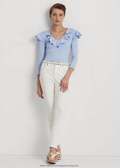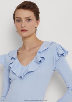 fodros szegélyű sztreccs pamut V-nyakú felső 2680484037 nők Ralph Lauren kavics kék