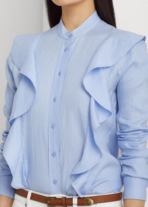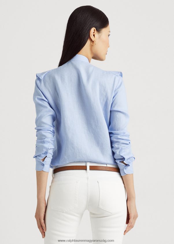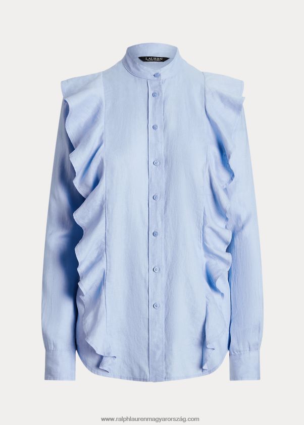 A lépcsőzetes fodrok nőies érzékenységet kölcsönöznek ennek az ingnek, amely könnyű vászonból készült. Elegáns vágott darab, amely felfelé vagy lefelé öltöztethető, „lauren ralph lauren” gravírozású gombokkal van díszítve az egyedi megjelenés érdekében.