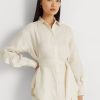 A lépcsőzetes fodrok nőies érzékenységet kölcsönöznek ennek az ingnek, amely könnyű vászonból készült. Elegáns vágott darab, amely felfelé vagy lefelé öltöztethető, „lauren ralph lauren” gravírozású gombokkal van díszítve az egyedi megjelenés érdekében.