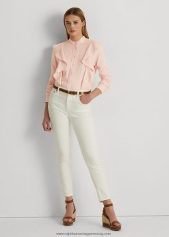 fodros szegélyű sztreccs pamut V-nyakú felső 2680484036 nők Ralph Lauren halvány rózsaszín