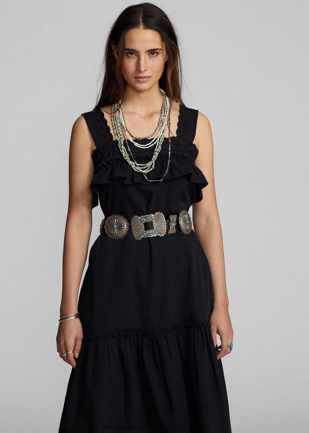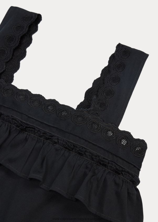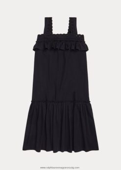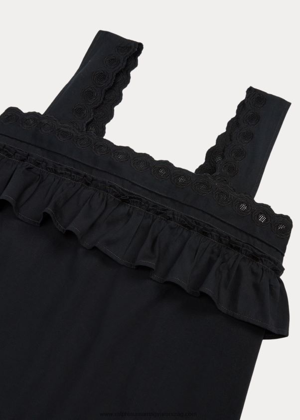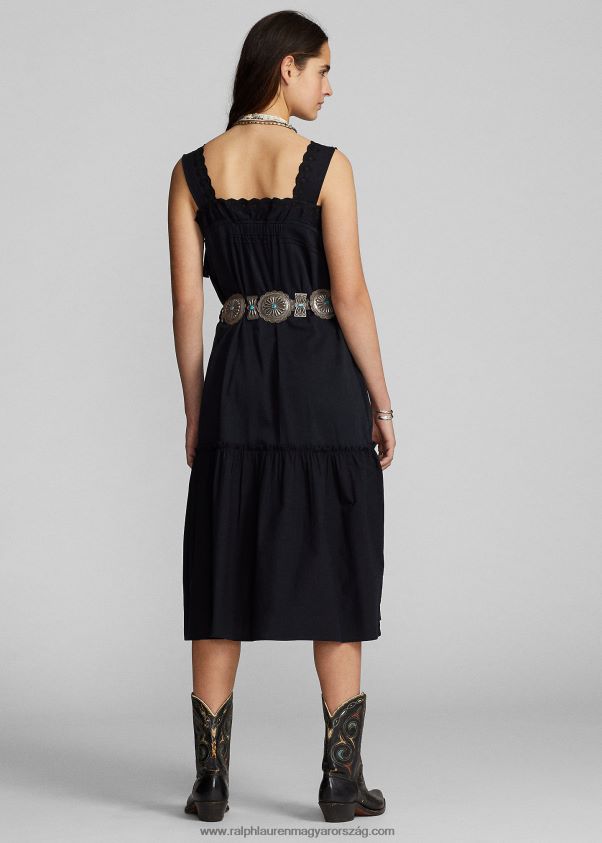 fűzőlyukkal hímzett fodros pamutruha 2680483621 nők Ralph Lauren vintage fekete