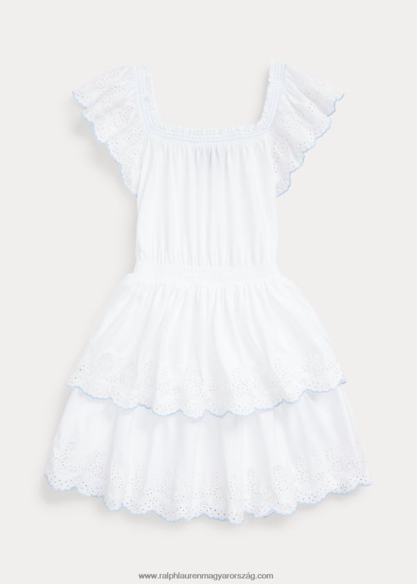 fűzőlyukkal hímzett pamut dzsörzé ruha 2680487059 gyerekek Ralph Lauren fehér