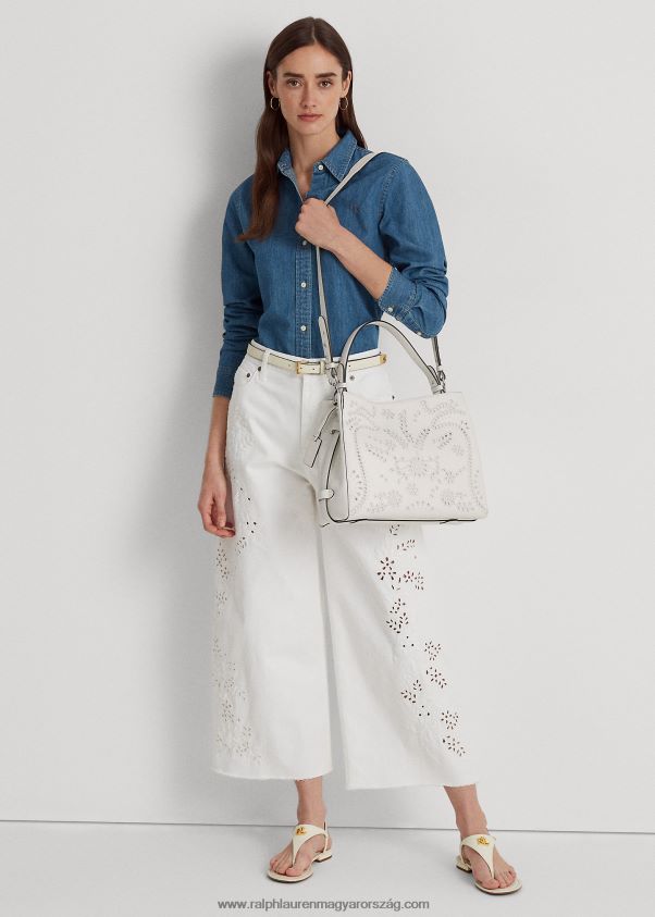 lauren ralph lauren elegáns megjelenése a táskán, a közepes peytont áramvonalas sziluettre vágták, és rugalmas, teljes kiőrlésű bőrből készült, amelyet természetesen sima felülete jellemez. Az elején bonyolult fűzőlyukú hímzéssel megemelkedett, számtalan zsebbel és kivehető keresztpánttal van felszerelve a sokoldalúság érdekében.