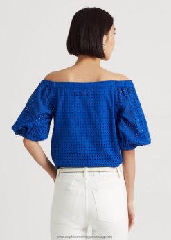 fűzőlyukú pamut vállból készült blúz 2680483914 nők Ralph Lauren kék szaturnusz