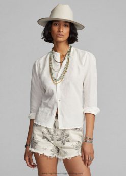 A teljes fűzőlyukú hímzés nőies hatást kölcsönöz ennek a felfújt ujjú, vállból álló blúznak. A ‘lauren ralph lauren’ gravírozott gombokkal díszített, könnyű pamutból készült a szellős megjelenés és érzet érdekében. A ralph lauren a jobb gyapottal együttműködve javítja a gyapottermesztést világszerte.