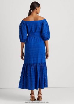 fűzőlyukú pamut vállú ruha 2680483918 nők Ralph Lauren kék szaturnusz