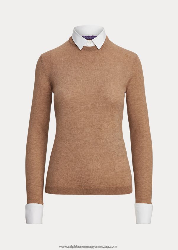 galléros kasmír pulóver 2680483590 nők Ralph Lauren teve melanzs
