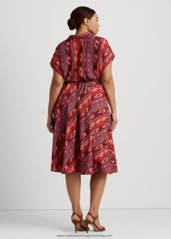 geocsíkos öves krepp ruha 2680484512 nők Ralph Lauren fukszia/narancs/multi