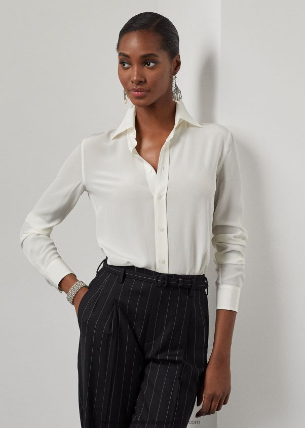 A hailey egy időtlen ing sziluettet emel ki fényűző krepp de chine-nel, egy eperfa selyem anyagból, amelyet kifejezetten sima tapintása, folyékony burkolata és enyhén szemcsés textúrája miatt választottak ki. Könnyű és légáteresztő, ez az olasz gyártmányú stílus más, alaposan átgondolt részletekkel is rendelkezik, beleértve a hegyes gallért, a dupla redőket minden mandzsettánál és az eredeti gyöngyház gombokat.