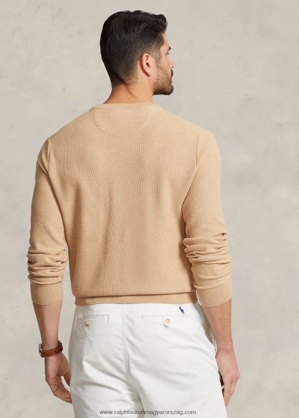 hálós kötésű pamut pulóver 2680481895 férfiak Ralph Lauren teve melanzs