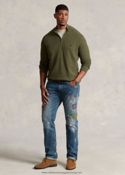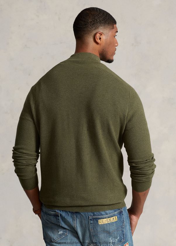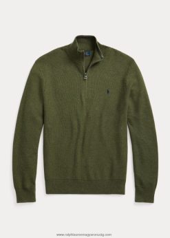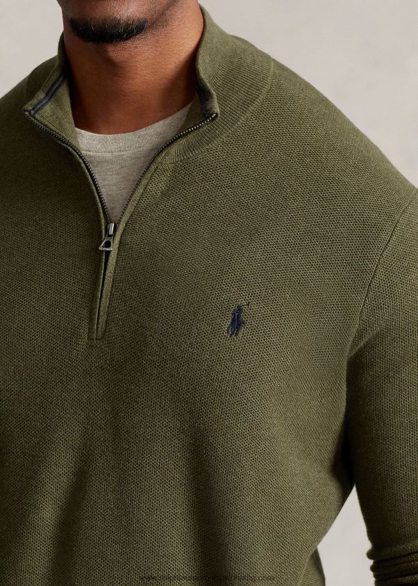 hálós kötött pamut negyedcipzáras pulóver 2680481913 férfiak Ralph Lauren klasszikus olíva hanga