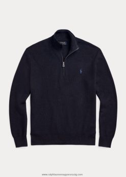 hálós kötött pamut negyedcipzáras pulóver 268048509 férfiak Ralph Lauren sötétkék hanga