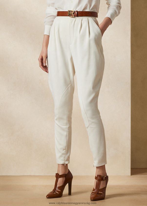 A női lovas kollekciónk 1985-ös debütálása óta a kiváló lovaglóruházat romantikája ihletforrást jelent Mr. Lauren. a 2012-es őszi kollekció nadrágja által ihletett harrison karcsúbb sziluettel és dupla elülső derékredőkkel értelmezi újra a hagyományos jodhpurokat. A lovassági twill gyártmányból készült és eperfa selyem szaténnal bélelt magas nadrágot autentikus részletekkel terveztek, például önfoltokkal és ikonikus ralph lauren befejező simításokkal, köztük egy jellegzetes gyöngyház gombbal.