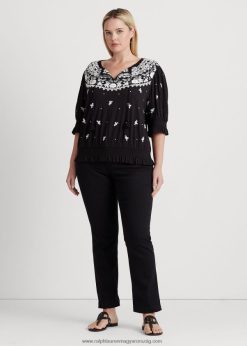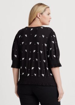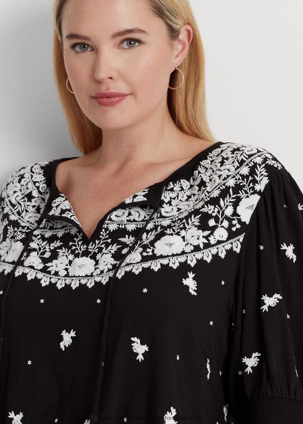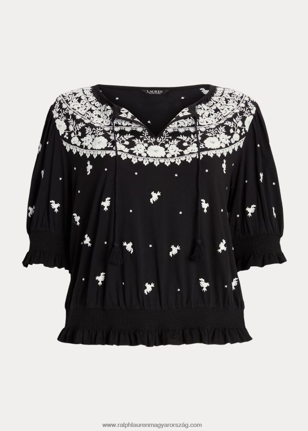 hímzett jersey nyakkendős felső 2680484540 nők Ralph Lauren fekete-fehér