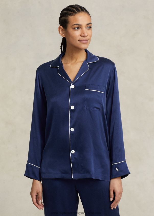 hosszú ujjú sztreccs selyem pizsama szett 2680483008 nők Ralph Lauren haditengerészet