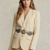 Speciálisan karcsú sziluettre szabott, autentikus lovaglás ihletésű blézerünk vadászfogú változata a tussah selyem és vászon luxus olasz keverékéből készült.