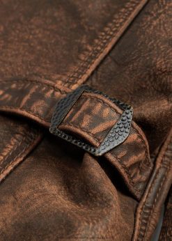 marhabőrből készült, sötétbarna-barnás árnyalattal. hátul varrásokkal és oldalsó állítókkal az illeszkedő sziluettért. Kifejezetten kidolgozott az elhasználódott megjelenés és a betört érzés érdekében. teljesen bélelt.
