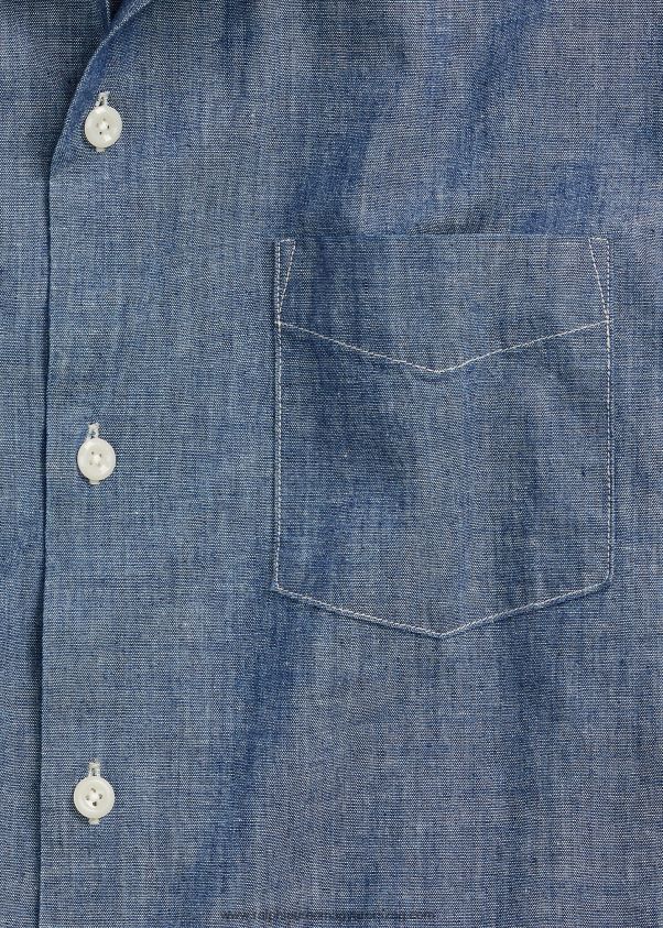 Japán pamut chambray-ből készült. foltos zsebek a mellkason. igazi indigóval festve és kimosva.
