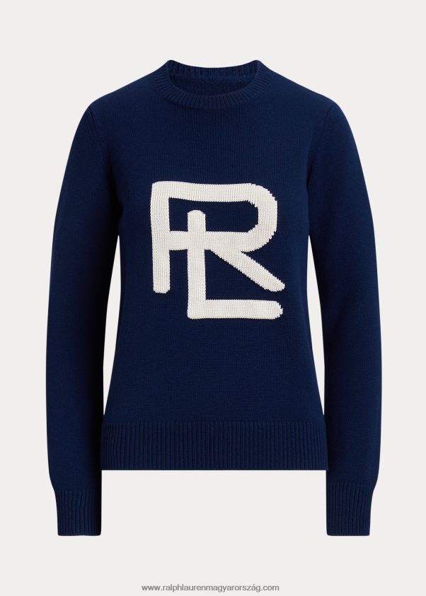 intarzia kötött rl merinó-selyem pulóver 2680483474 nők Ralph Lauren lux navy/lux krém