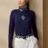 kollégiumi stílus – ralph lauren folyamatos inspirációforrása – ennek a hosszú ujjú, nyakú pulóvernek a dizájnja. bordás kötésű díszítéssel és enyhén laza illeszkedéssel, ennek az olasz gyártmányú stílusnak a közepén egy eperfa selyem, intarziakötésű monogram áll, amely gyönyörű kontrasztot alkot a matt gyapjútesttel.