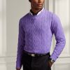 kábel kötésű kasmír pulóver 26804874 férfiak Ralph Lauren klasszikus ibolya