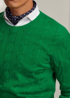 kábel kötésű kasmír pulóver 26804877 férfiak Ralph Lauren tengeri zöld