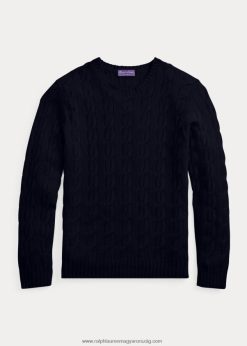 kábel kötésű kasmír pulóver 26804872 férfiak Ralph Lauren klasszikus elnöki haditengerészet