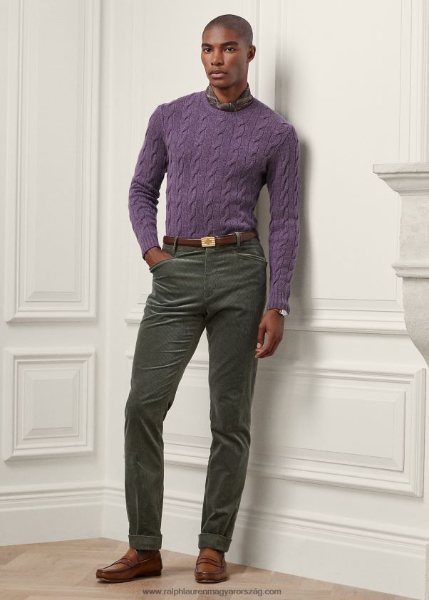 kábel kötésű kasmír pulóver 26804881 férfiak Ralph Lauren szőlő melanzs