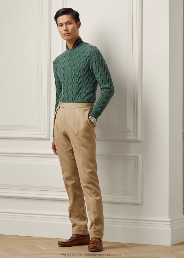 A pulóver elkészítéséhez a kasmírt aprólékosan fésülték ki Mongólia hegyeiben nevelkedett kecskékből, ahol a magas tengerszint feletti magasság és a hideg éghajlat finom, puha alsó gyapjút eredményez. csak a legjobb szálakat használják fel, ami festéskor tökéletesen egyenletes színezést, valamint kivételes melegséget és hihetetlen puhaságot biztosít. A precíz beszerzési eljárás után kézművesek fonják meg őket egy évszázados olasz malomban, és a svájci Alpokból származó tiszta vízzel mossák. ez a stílus további színekben, szövetekben vagy anyagokban is elérhető rendelésre készült szolgáltatásunkon keresztül. további információkért kérjük, foglaljon időpontot a helyi ralph lauren üzletben.