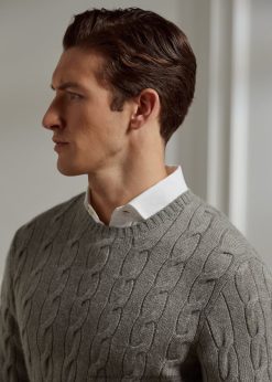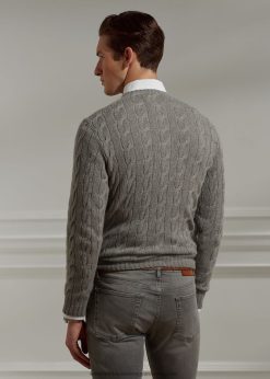 kábel kötésű kasmír pulóver 26804884 férfiak Ralph Lauren világosszürke hanga