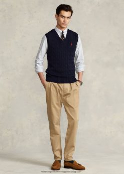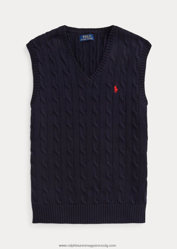 kábel kötésű pamut pulóver mellény 268048506 férfiak Ralph Lauren vadásztengerészet