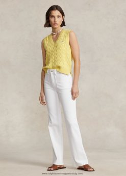 kábel kötésű pamut V-nyakú pulóver mellény 2680482903 nők Ralph Lauren beekman sárga