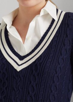 kábelkötésű krikettpulóver 2680484379 nők Ralph Lauren finomított sötétkék/krém