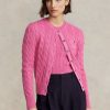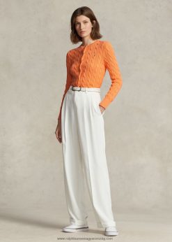 kábelkötésű pamut nyakú kardigán 2680482899 nők Ralph Lauren világos narancs