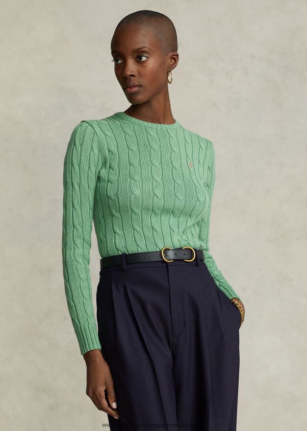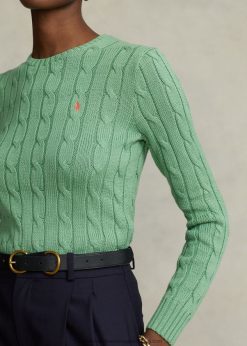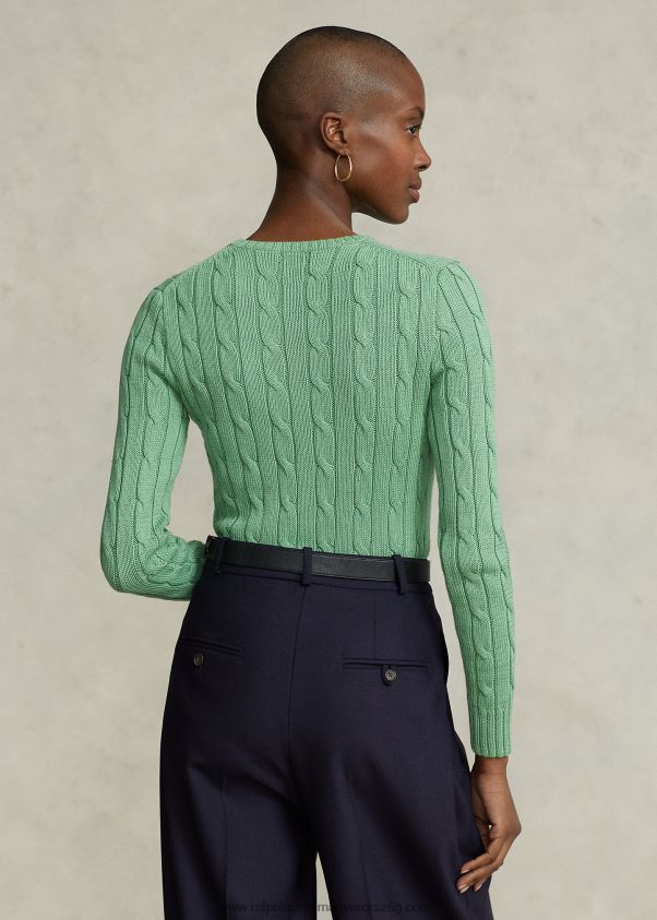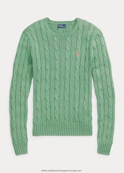 kábelkötésű pamut nyakú pulóver 2680489088 nők Ralph Lauren külső zöld
