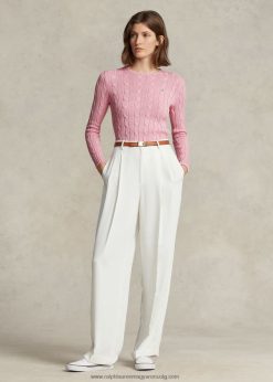 kábelkötésű pamut nyakú pulóver 2680489089 nők Ralph Lauren karmel rózsaszín
