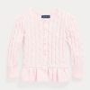 Közepes súlyú fésült pamut és játékos peplum szegély teszi ezt a kardigán bájos viseletet egész évben.