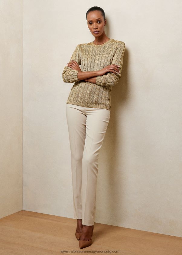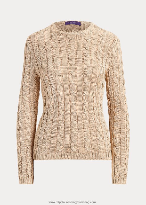 kábelkötésű selyem nyakú pulóver 2680483486 nők Ralph Lauren homok