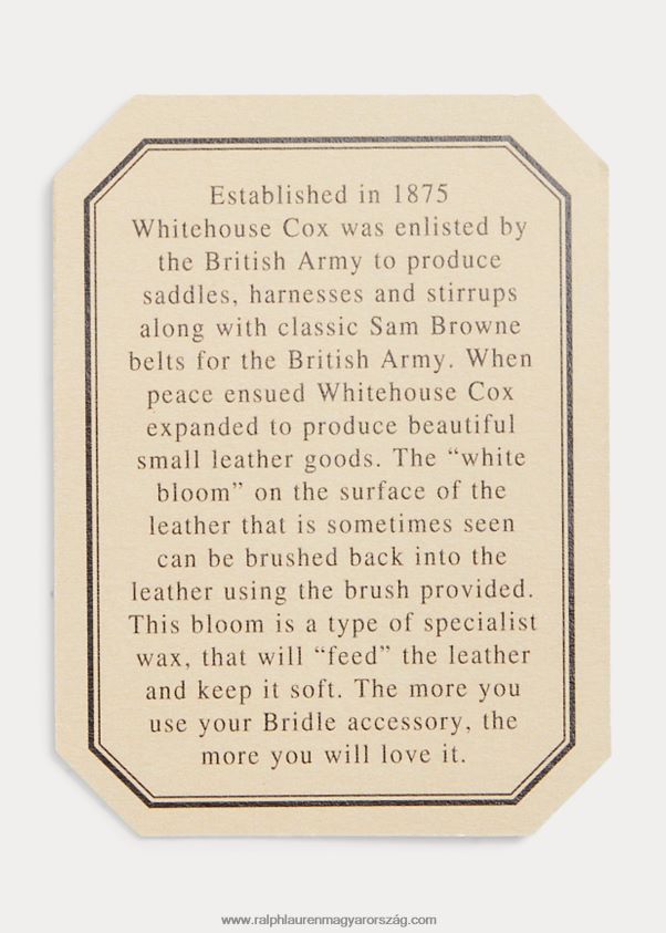 Angliában, hagyományos módszerekkel, kézzel készített cipőkanál, amelynek pántja a Whitehouse Cox híres kantárbőréből készült, amely idővel gazdag patinát fejleszt ki.