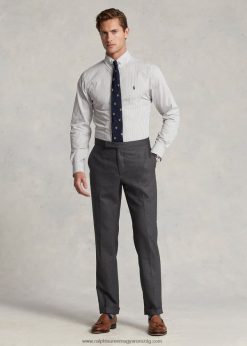 karcsú szabású csíkos poplin ing 268048381 férfiak Ralph Lauren szürke köd