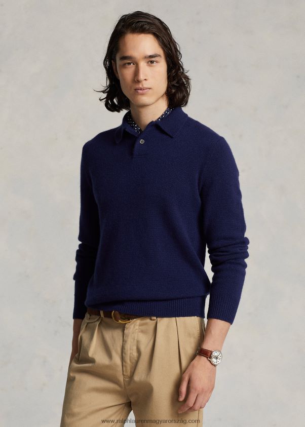 kasmír polo galléros pulóver 268048139 férfiak Ralph Lauren fényes sötétkék