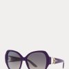 A ralph lauren ikonikus kengyeles szemüvegkollekciójának része, ezek a túlméretezett, pillangó alakú napszemüvegek gyönyörűen csiszolt acetátból készültek, és lovas ihletésű részleteket tartalmaznak, fényes kristálydíszítésekkel, valamint jellegzetes rl logónkkal. minden templom.