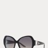 A ralph lauren ikonikus kengyeles szemüvegkollekciójának része, ezek a túlméretezett, pillangó alakú napszemüvegek gyönyörűen csiszolt acetátból készültek, és lovas ihletésű részleteket tartalmaznak, fényes kristálydíszítésekkel, valamint jellegzetes rl logónkkal. minden templom.