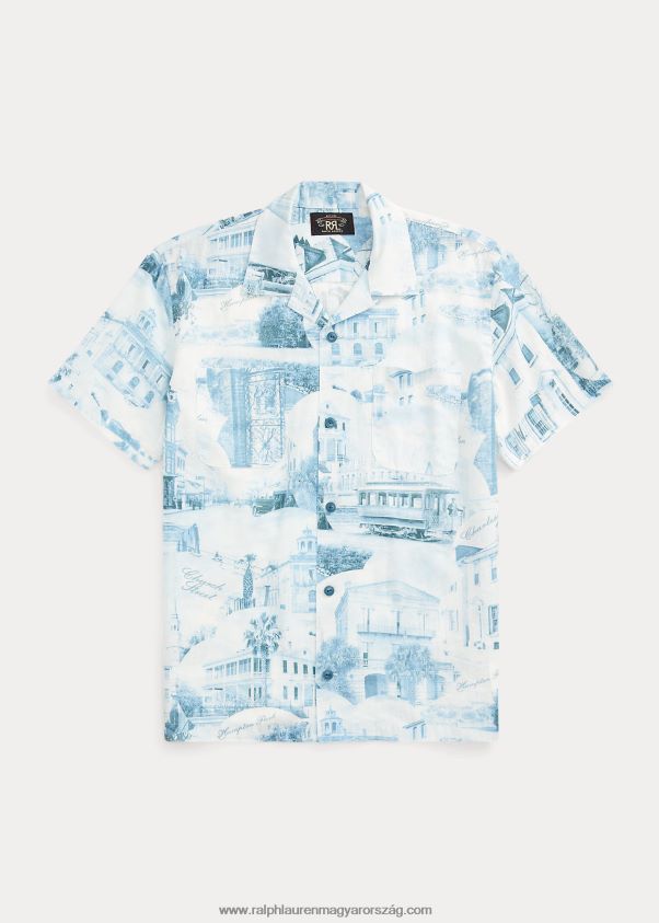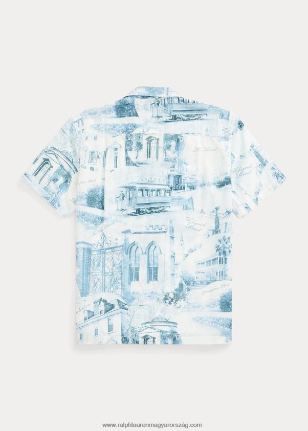 képeslapmintás vászon-pamut tábori ing 2680481762 férfiak Ralph Lauren krém/kék