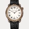 Az amerikai western órakollekció egy limitált példányszámban készült, kézzel készített órák, amelyeket ralph lauren amerikai nyugat iránti szeretete ihletett, és megragadja a vintage rodeó- és kagylóövek hiteles szellemét és egyéni karakterét, mr. Lauren visel, ami gyakran befolyásolja a terveit. Az antikolt sterling ezüstbe öntött modell gravírozott kör alakú tokja 45,8 mm x 11,24 mm méretű, és 2 órakor eltolt koronával van befejezve. az órát egy vintage ihletésű törtfehér számlap díszíti, kézzel nyomott római és arab számokkal – ez a kombináció a ralph lauren márkára jellemző – és breguet stílusú mutatók egészítik ki. a szerkezet, a piaget által a ralph lauren számára készített öntekervényes kaliberű rl514, 21 600 rezgés/óra frekvencián fut, és 26 ékszert tartalmaz hozzávetőlegesen 40 órás teljesítménytartalékkal. A megjelenést a jellegzetes bőrszíj teszi teljessé, amelyet texasban kézzel szerszámoznak, és Olaszországban csiszoltak, míg a fémház és a csat kézzel gravírozott ésNew York Cityben öregedtek.
