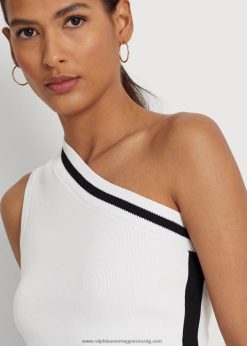 kétszínű, egy vállra vágott pulóver 2680483903 nők Ralph Lauren fehér fekete