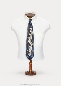 kézzel készített hangjegyes selyem nyakkendő 2680488831 férfiak Ralph Lauren sötétkék/lt kék/törtfehér mu